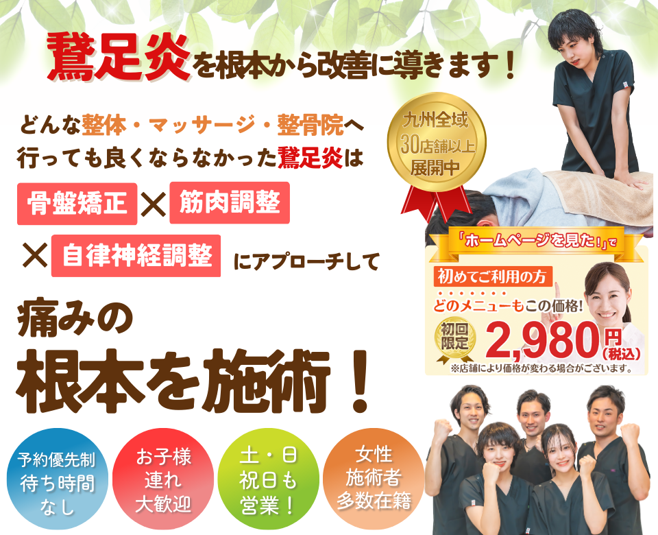 日常生活の歩き方が悪くなっている可能性もあるので、骨盤矯正をして正しい位置に戻したり、またテーピング療法で日常生活の負担を減らすような施術を行っていきます。